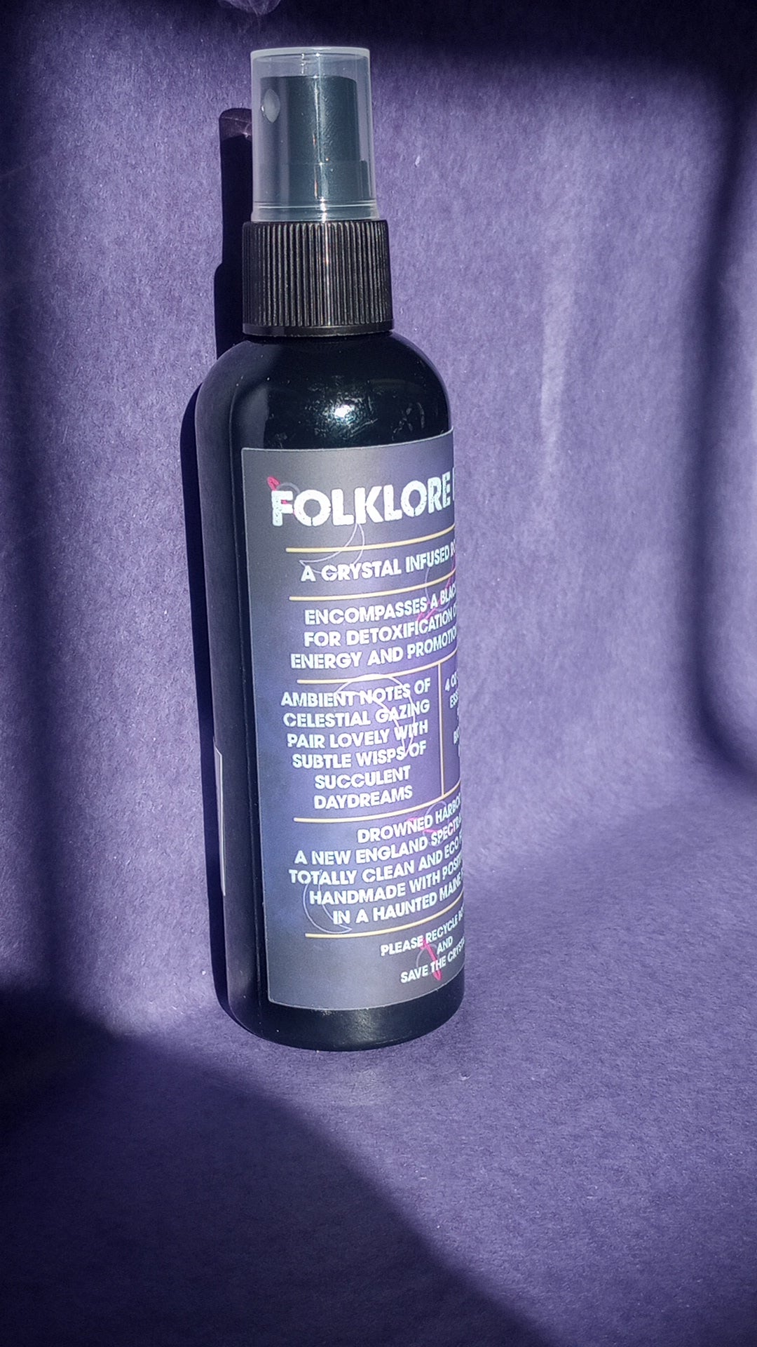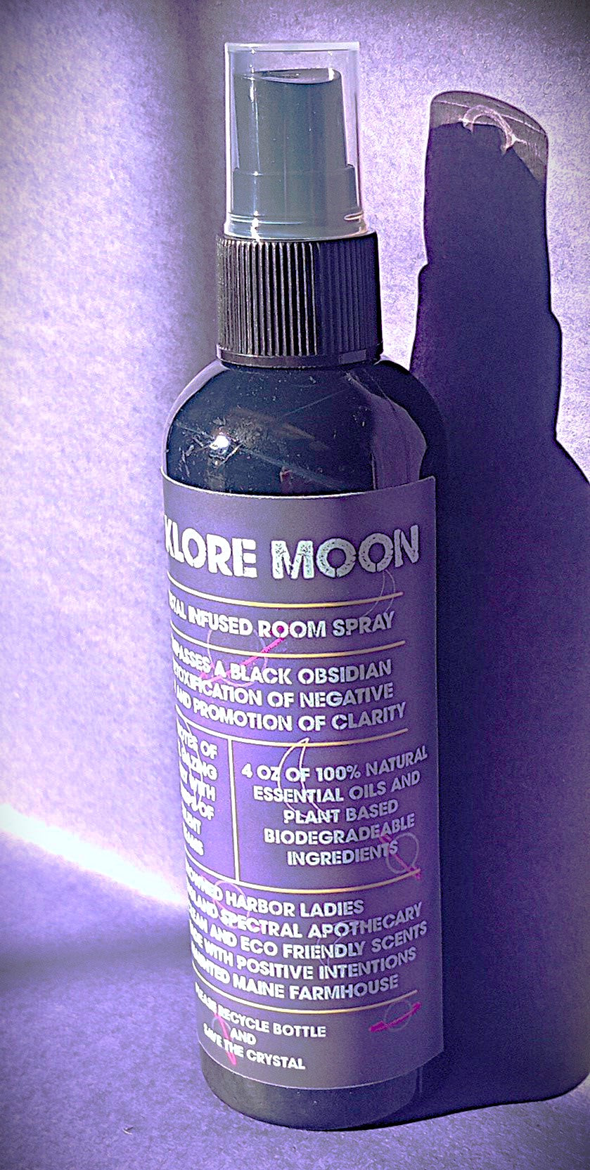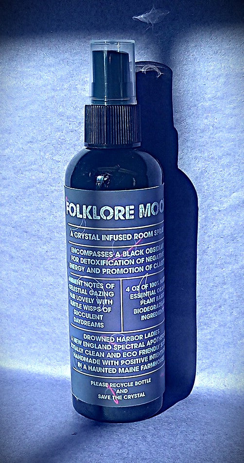 **Folklore Moon Spray** is crafted for witches, empaths, dreamers, and those who carry too much of the world on their shoulders. Each mist is conjured beneath the watching moon, blended with purifying botanicals and whispered incantations inside our haunted Maine farmhouse.