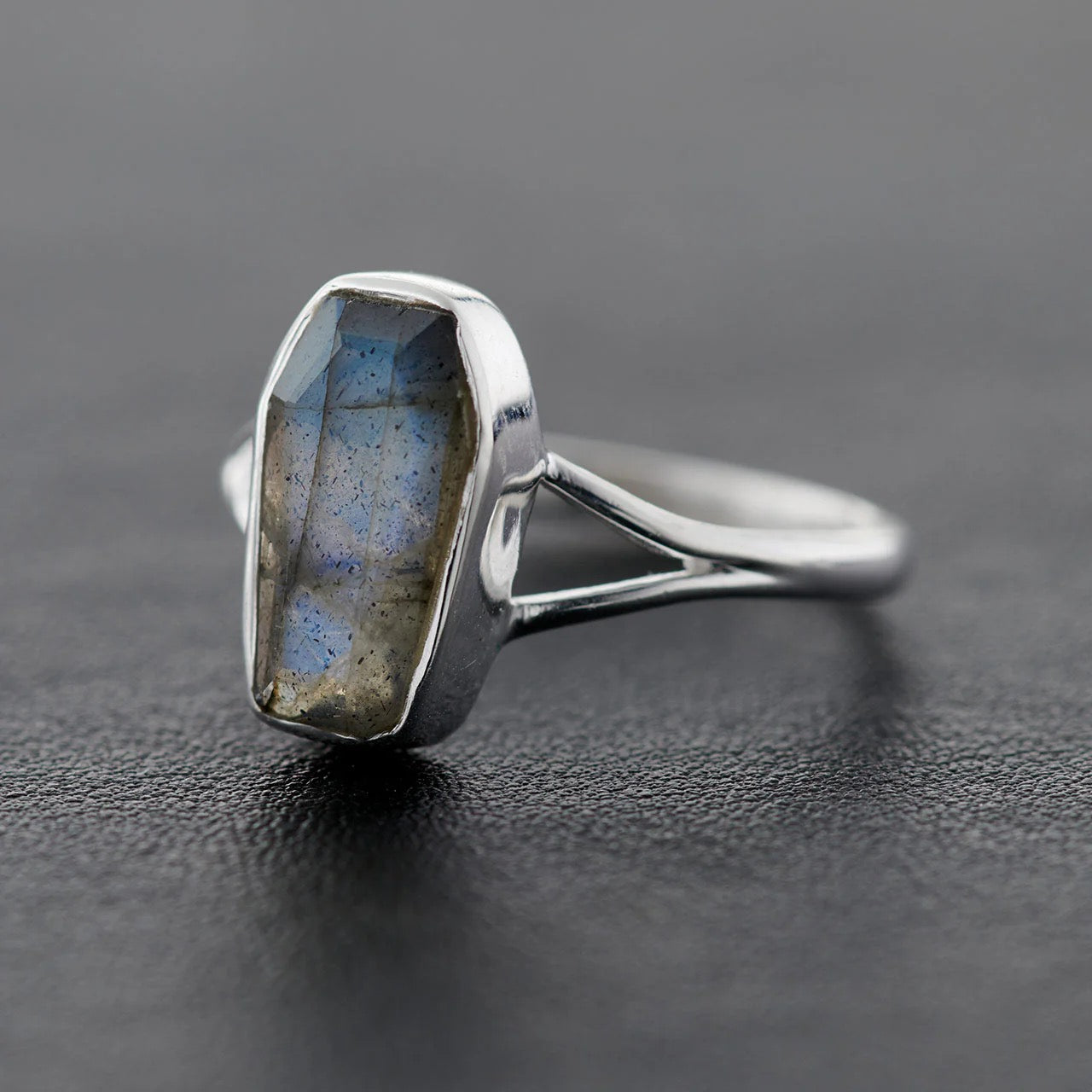 Labradorite Sterling Silver Coffin Ring