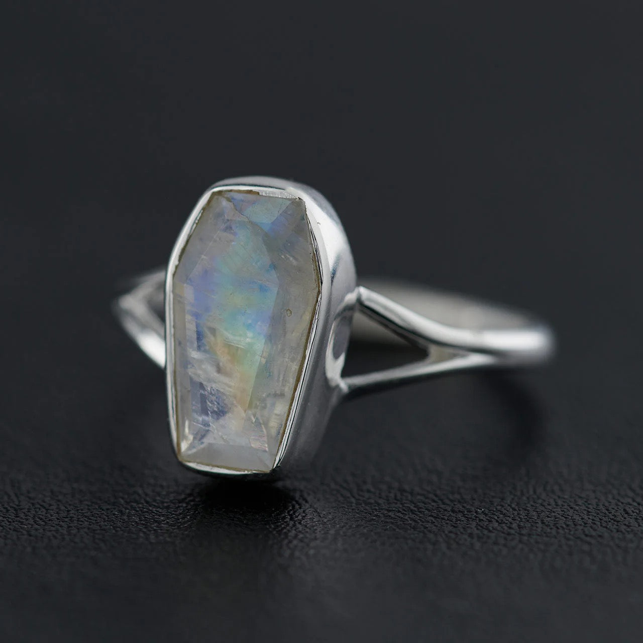 Moonstone Sterling Silver Coffin Ring