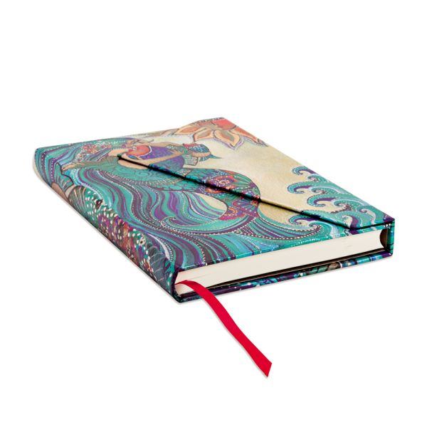 Laurel Burch’s “Ocean Songs” series, one piece of which is reproduced here, highlights her unmistakable vibrant palette and aqueous brushstrokes. Her original artwork also contained a handwritten poem, which can be seen when you open this journal’s flap.